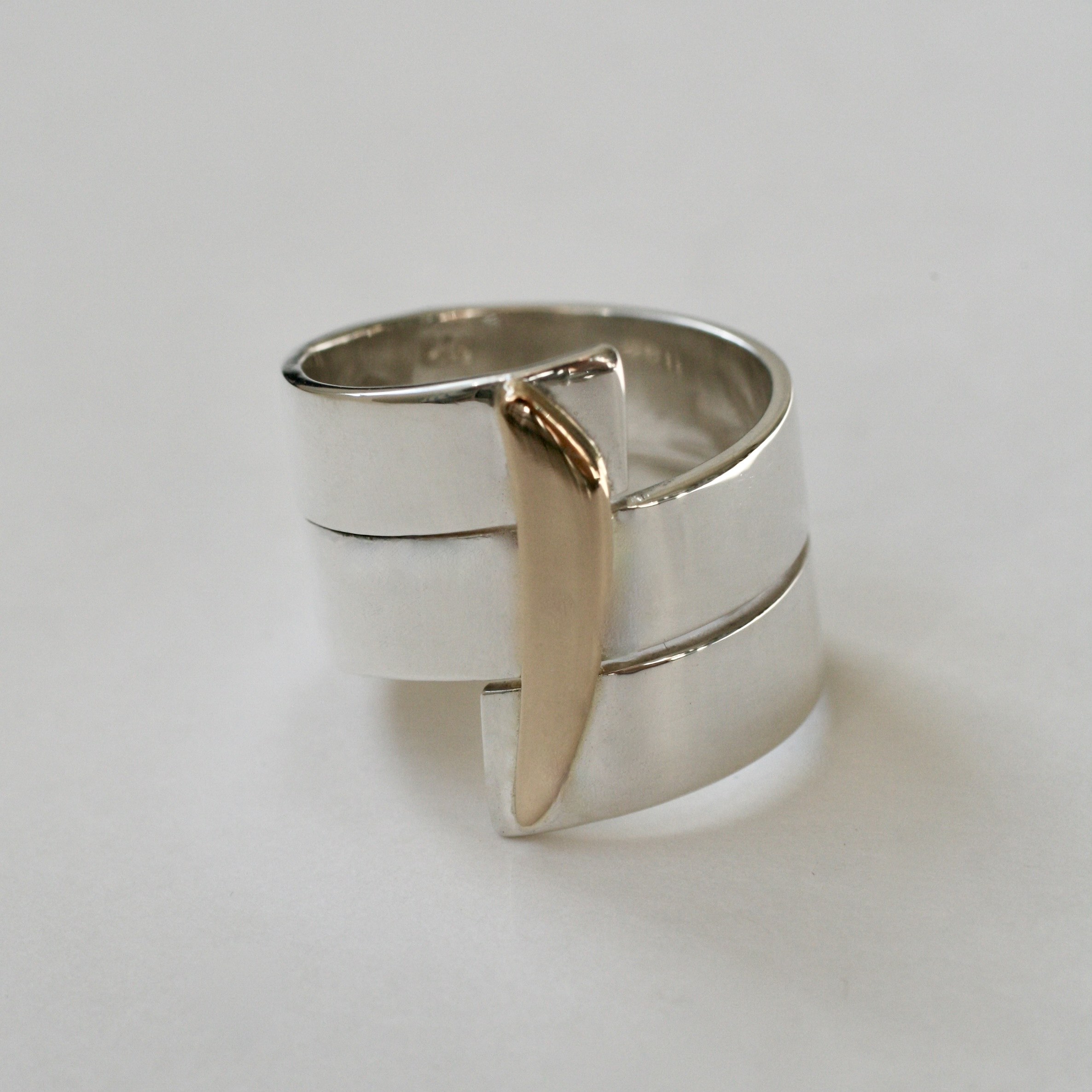 Bague spirale en argent 1er titre et or jaune 18k fabriqué à la main. Ce modèle a deux variations. La spirale a deux sens différents selon la main sur laquelle on la porte. Ici c’est pour la main gauche (annulaire ou auriculaire – selon vos goûts et l’usage). Cet exemplaire prêt à être expédié est de taille 57. D’autres tailles sont possibles sur commande – veuillez m’écrire un e-mail par le formulaire de contact en m’indiquant votre taille habituelle avant de passer commande. Je vous établirai un devis selon le cours de l’or et vous conseillerai sur la taille.